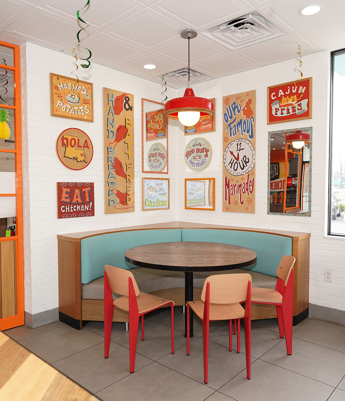 This ground up drive-thru location in Paramus, NJ features the latest image from Popeyes that gives that welcoming New Orleans feel both inside and outside. The dining room can seat up to 41 guests.
